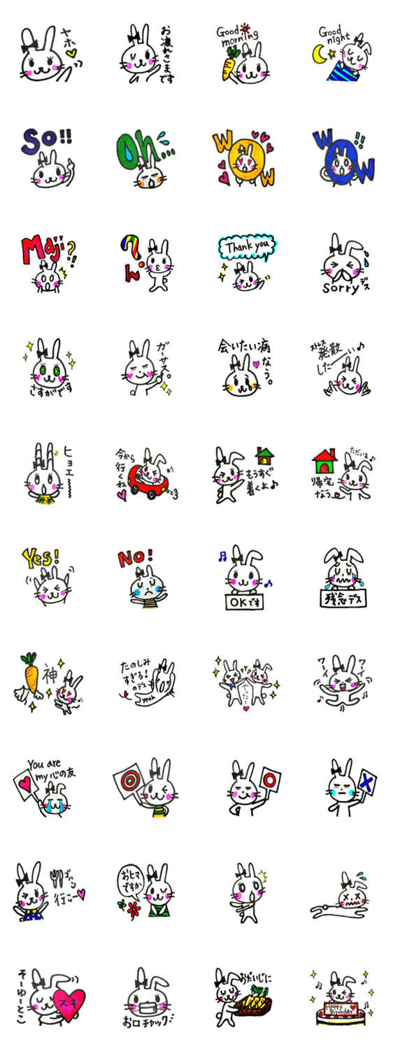 ウサコのキモチ usausamaker コメントをどうぞ ウサコは右耳の黒いリボンとピンクのほっぺがチャームポイントのうさたん。感情表現を得意としているらしい。ウサコと一緒に可愛く、楽しく、時に激しく気持ちを伝えよう。 このスタンプどう思う?!↓クリックで投票♪好き (0)かわいい (0)かっこいい (0)おもしろい (0)使いやすそう (0)欲しい (0)萌え (0)ほっこりする (0)おしゃれ (0)ゆるい (0)こわい (0)ウザい (0)キモい (0)ムカつく (0)持ってる (0)癒される (0)セクシー (0)個性的 (0)私は買わない (0)誰かプレゼントして! (0) 購入・プレゼントする Facebookでシェア Twitterでシェア