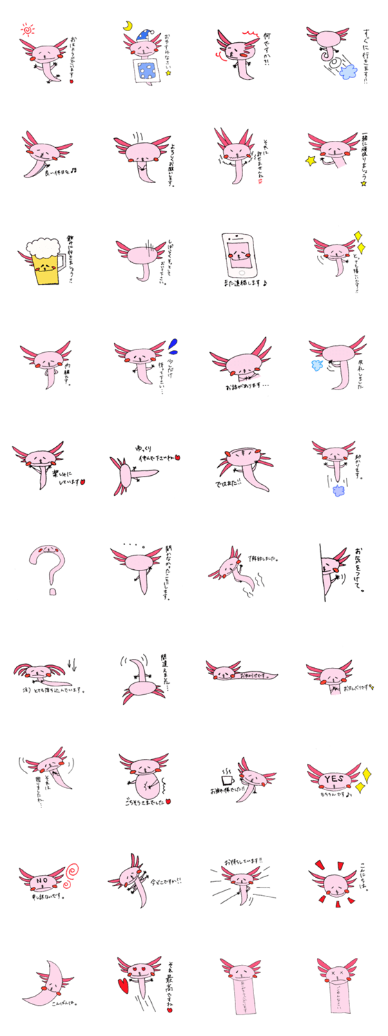 ウーパールーパー日常会話~敬語ver.~ 美笑 コメントをどうぞ 可愛いウーパールーパーで日常会話を楽しみましょう!!敬語なのでとっても使いやすいです♪ このスタンプどう思う?!↓クリックで投票♪好き (0)かわいい (0)かっこいい (0)おもしろい (0)使いやすそう (0)欲しい (0)萌え (0)ほっこりする (0)おしゃれ (0)ゆるい (0)こわい (0)ウザい (0)キモい (0)ムカつく (0)持ってる (0)癒される (0)セクシー (0)個性的 (0)私は買わない (0)誰かプレゼントして! (0) 購入・プレゼントする Facebookでシェア Twitterでシェア