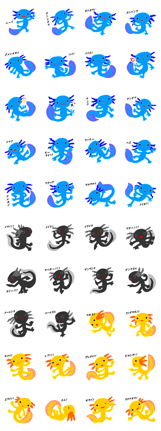 ウーパールーパーchan(オス) tomoQ コメントをどうぞ ウーパールーパーのかわいめスタンプ(尻尾は半透明)青黒金色バージョン。ツッコミ、挨拶し、一発返信するステッカー、さらに汎用的でよく使うメッセージ同梱ダヨ。 このスタンプどう思う?!↓クリックで投票♪好き (0)かわいい (0)かっこいい (0)おもしろい (0)使いやすそう (0)欲しい (0)萌え (0)ほっこりする (0)おしゃれ (0)ゆるい (0)こわい (0)ウザい (0)キモい (0)ムカつく (0)持ってる (0)癒される (0)セクシー (0)個性的 (0)私は買わない (0)誰かプレゼントして! (0) 購入・プレゼントする Facebookでシェア Twitterでシェア