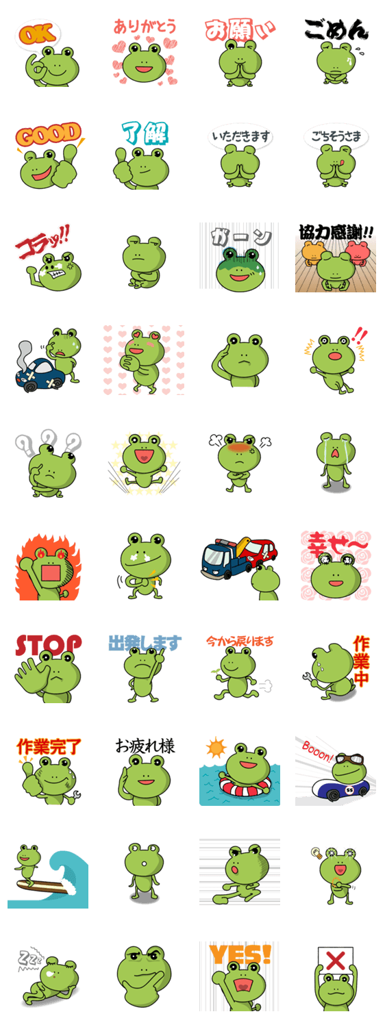 エコ-ゲコ! (eco.geco!) 廃車ドットコム合同会社 コメントをどうぞ ボクは、エコゲコ(eco.geco)だケロ!廃車ドットコムの公式キャラクターなんだケロ♪ボクのスタンプを、ヨロシクだケロ! このスタンプどう思う?!↓クリックで投票♪好き (0)かわいい (0)かっこいい (0)おもしろい (0)使いやすそう (0)欲しい (0)萌え (0)ほっこりする (0)おしゃれ (0)ゆるい (0)こわい (0)ウザい (0)キモい (0)ムカつく (0)持ってる (0)癒される (0)セクシー (0)個性的 (0)私は買わない (0)誰かプレゼントして! (0) 購入・プレゼントする Facebookでシェア Twitterでシェア
