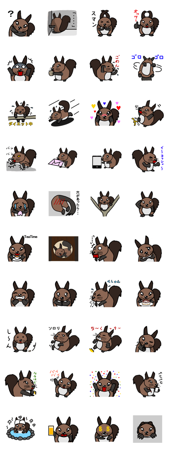 エゾリスのエリス くっぴー コメントをどうぞ エゾリスの日常生活をスタンプにしました。 このスタンプどう思う?!↓クリックで投票♪好き (0)かわいい (0)かっこいい (0)おもしろい (0)使いやすそう (0)欲しい (0)萌え (0)ほっこりする (0)おしゃれ (0)ゆるい (0)こわい (0)ウザい (0)キモい (0)ムカつく (0)持ってる (0)癒される (0)セクシー (0)個性的 (0)私は買わない (0)誰かプレゼントして! (0) 購入・プレゼントする Facebookでシェア Twitterでシェア