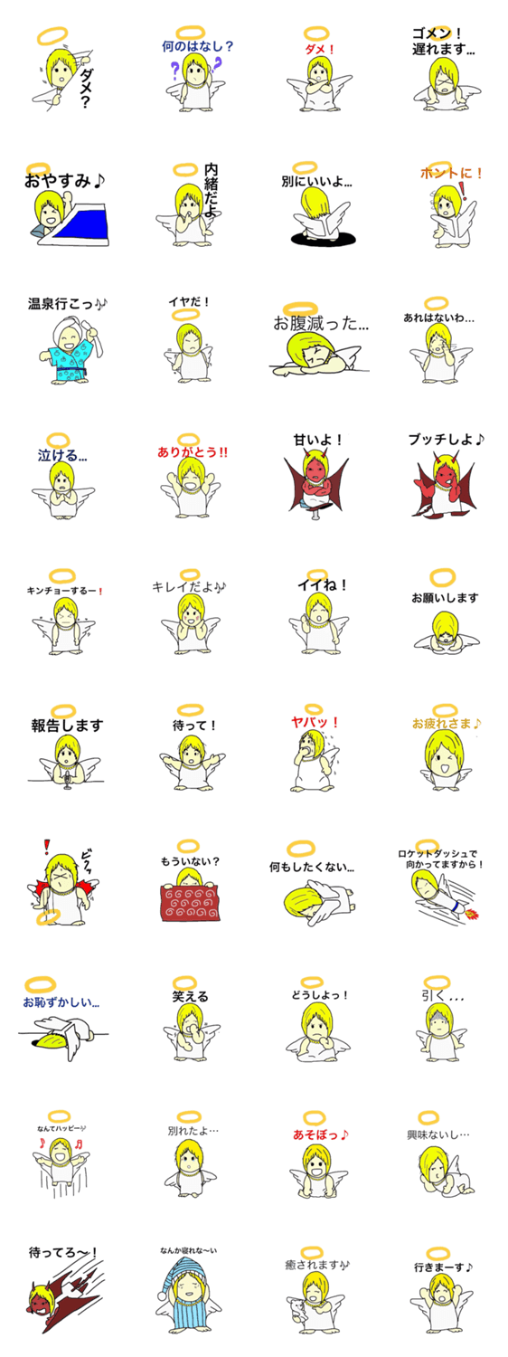 エンちゃん シーズン2 ヒョナヒョナ コメントをどうぞ エンジェルのエンちゃんの第2弾です。前回よりさらにパワーアップして帰ってきました。色んな場面で使って頂けたら幸いです。よろしくお願いします。 このスタンプどう思う?!↓クリックで投票♪好き (0)かわいい (0)かっこいい (0)おもしろい (0)使いやすそう (0)欲しい (0)萌え (0)ほっこりする (0)おしゃれ (0)ゆるい (0)こわい (0)ウザい (0)キモい (0)ムカつく (0)持ってる (0)癒される (0)セクシー (0)個性的 (0)私は買わない (0)誰かプレゼントして! (0) 購入・プレゼントする Facebookでシェア Twitterでシェア