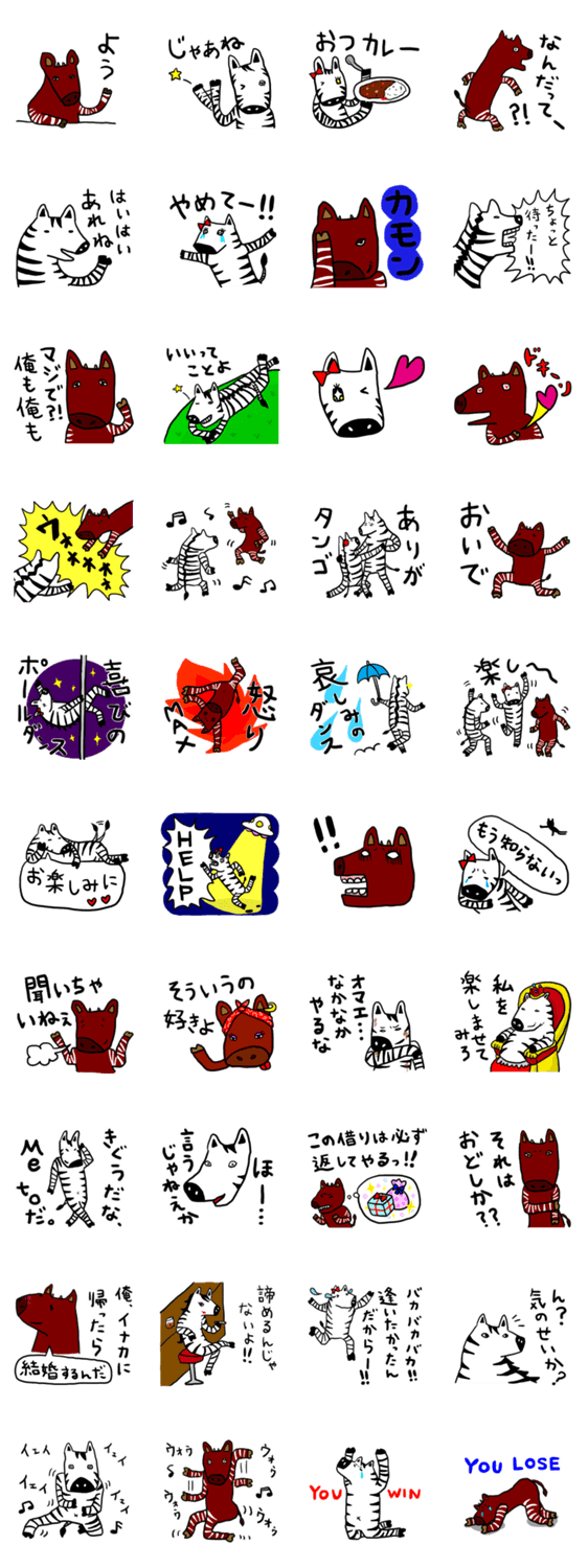 オカピとシマウマのダンスバトル Andy.t コメントをどうぞ オスのオカピとメスのシマウマ、そしてオスのシマウマの三角関係。同じシマシマ模様同士仲良くなれる日は来るのか、ちょっぴり切ないダンスバトルが幕を開ける…!! このスタンプどう思う?!↓クリックで投票♪好き (0)かわいい (0)かっこいい (0)おもしろい (0)使いやすそう (0)欲しい (0)萌え (0)ほっこりする (0)おしゃれ (0)ゆるい (0)こわい (0)ウザい (0)キモい (0)ムカつく (0)持ってる (0)癒される (0)セクシー (0)個性的 (0)私は買わない (0)誰かプレゼントして! (0) 購入・プレゼントする Facebookでシェア Twitterでシェア
