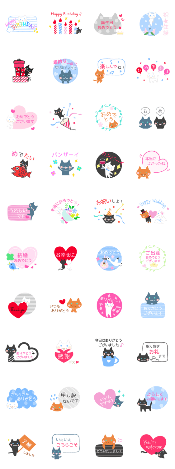 オシャレにゃんこのおめでとう&ありがとう SofNet Solutions, Inc. コメントをどうぞ 結婚や出産、誕生日などのお祝いや、ありがとうなどよく使う言葉をがオシャレなにゃんこ達が伝えるよ♪お正月に使える「めでたい」スタンプや、便利な文字なしスタンプも☆ このスタンプどう思う?!↓クリックで投票♪好き (0)かわいい (0)かっこいい (0)おもしろい (0)使いやすそう (0)欲しい (0)萌え (0)ほっこりする (0)おしゃれ (0)ゆるい (0)こわい (0)ウザい (0)キモい (0)ムカつく (0)持ってる (0)癒される (0)セクシー (0)個性的 (0)私は買わない (0)誰かプレゼントして! (0) 購入・プレゼントする Facebookでシェア Twitterでシェア