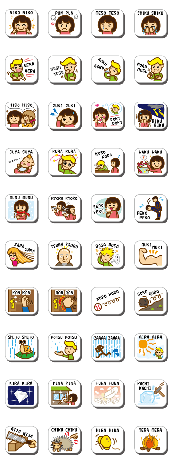 オノマトペ! Junie コメントをどうぞ 日本の擬音語は面白い!外国の人にとっては独特の発音とリズムがとても面白く感じるかも!日本が好きな外国人のお友達にも、楽しい日本のオノマトペをぜひ教えてあげてね! このスタンプどう思う?!↓クリックで投票♪好き (0)かわいい (0)かっこいい (0)おもしろい (0)使いやすそう (0)欲しい (0)萌え (0)ほっこりする (0)おしゃれ (0)ゆるい (0)こわい (0)ウザい (0)キモい (0)ムカつく (0)持ってる (0)癒される (0)セクシー (0)個性的 (0)私は買わない (0)誰かプレゼントして! (0) 購入・プレゼントする Facebookでシェア Twitterでシェア