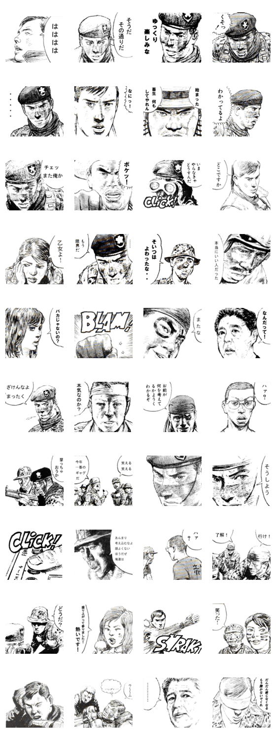 オメガ7 小林源文 コメントをどうぞ 小林源文が描く、等身大の人間臭いキャラクターたちが繰り広げる自衛隊特殊部隊の臨場感あふれる劇画です。 このスタンプどう思う?!↓クリックで投票♪好き (0)かわいい (0)かっこいい (2)おもしろい (0)使いやすそう (0)欲しい (1)萌え (0)ほっこりする (0)おしゃれ (0)ゆるい (0)こわい (0)ウザい (0)キモい (0)ムカつく (0)持ってる (0)癒される (0)セクシー (0)個性的 (0)私は買わない (0)誰かプレゼントして! (1) 購入・プレゼントする Facebookでシェア Twitterでシェア