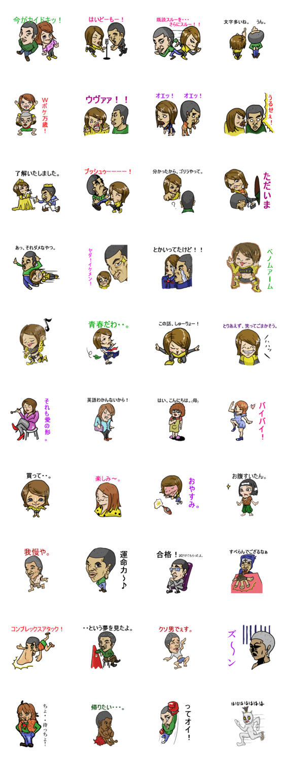 カイドキッスタンプ よしもとクリエイティブ・エージェンシー コメントをどうぞ 吉本所属の無名男女お笑いコンビ「カイドキッ」のスタンプです。数あるコントの中のキャラクタースタンプが登場!どこで使うのか不明なスタンプも多数取り揃えております。 このスタンプどう思う?!↓クリックで投票♪好き (0)かわいい (0)かっこいい (0)おもしろい (0)使いやすそう (0)欲しい (0)萌え (0)ほっこりする (0)おしゃれ (0)ゆるい (0)こわい (0)ウザい (0)キモい (0)ムカつく (0)持ってる (0)癒される (0)セクシー (0)個性的 (0)私は買わない (0)誰かプレゼントして! (0) 購入・プレゼントする Facebookでシェア Twitterでシェア