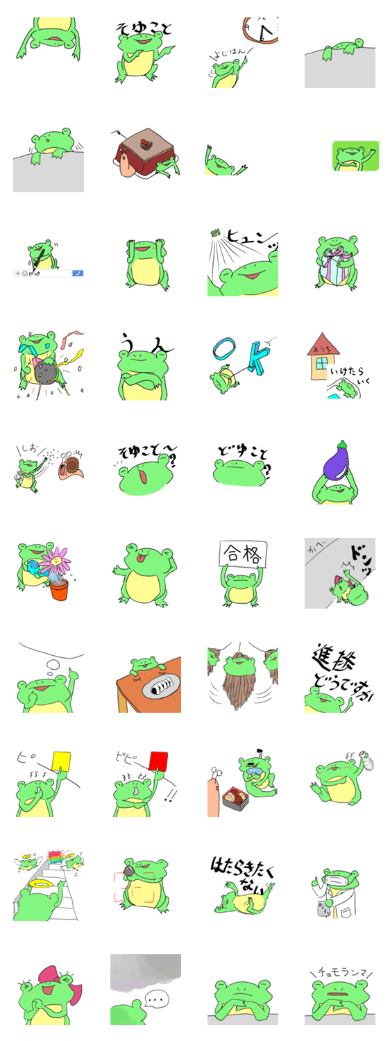 カエルのだいごろうスタンプ2 だいごろう コメントをどうぞ ほのぼのゆるゆるなカエルのだいごろうスタンプ第2弾。ケロケロケロケロしてます。 このスタンプどう思う?!↓クリックで投票♪好き (0)かわいい (0)かっこいい (0)おもしろい (0)使いやすそう (0)欲しい (0)萌え (0)ほっこりする (0)おしゃれ (0)ゆるい (0)こわい (0)ウザい (0)キモい (0)ムカつく (0)持ってる (0)癒される (0)セクシー (0)個性的 (0)私は買わない (0)誰かプレゼントして! (0) 購入・プレゼントする Facebookでシェア Twitterでシェア