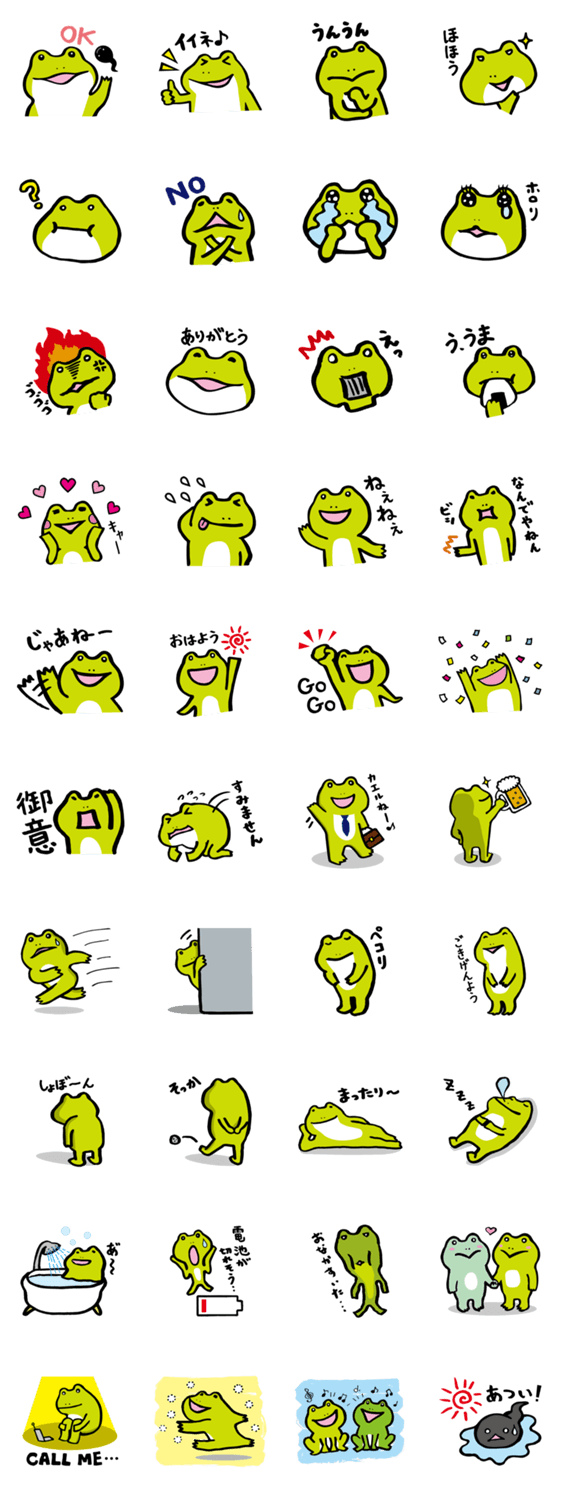 カエルのぴーにゃ かえる日和 コメントをどうぞ カエル好きデザイナーの、カエル好きのための、ほのぼのカエル「ぴーにゃ」のスタンプです。 このスタンプどう思う?!↓クリックで投票♪好き (0)かわいい (0)かっこいい (0)おもしろい (0)使いやすそう (0)欲しい (0)萌え (0)ほっこりする (0)おしゃれ (0)ゆるい (0)こわい (0)ウザい (0)キモい (0)ムカつく (0)持ってる (0)癒される (0)セクシー (0)個性的 (0)私は買わない (0)誰かプレゼントして! (0) 購入・プレゼントする Facebookでシェア Twitterでシェア