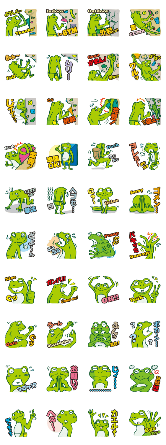 カエルのクライマー K考党 コメントをどうぞ ボルダリング好きのコミュニケーションにどうぞ。第2弾はボルダリング大好きカエルです。腰のチョークバッグがお気に入り。 このスタンプどう思う?!↓クリックで投票♪好き (0)かわいい (0)かっこいい (0)おもしろい (0)使いやすそう (0)欲しい (0)萌え (0)ほっこりする (0)おしゃれ (0)ゆるい (0)こわい (0)ウザい (0)キモい (0)ムカつく (0)持ってる (0)癒される (0)セクシー (0)個性的 (0)私は買わない (0)誰かプレゼントして! (0) 購入・プレゼントする Facebookでシェア Twitterでシェア