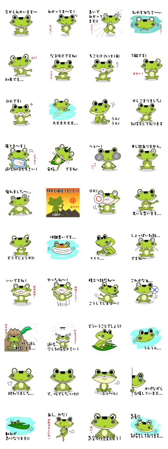 カエルのケロ助 Miyazawa_Y コメントをどうぞ カエルのケロ助。日常、よく使う言葉をまとめました。ケロ助が代わって代弁いたします。応援宜しくお願いいたしますね。 このスタンプどう思う?!↓クリックで投票♪好き (0)かわいい (0)かっこいい (0)おもしろい (0)使いやすそう (0)欲しい (0)萌え (0)ほっこりする (0)おしゃれ (0)ゆるい (0)こわい (0)ウザい (0)キモい (0)ムカつく (0)持ってる (0)癒される (0)セクシー (0)個性的 (0)私は買わない (0)誰かプレゼントして! (0) 購入・プレゼントする Facebookでシェア Twitterでシェア