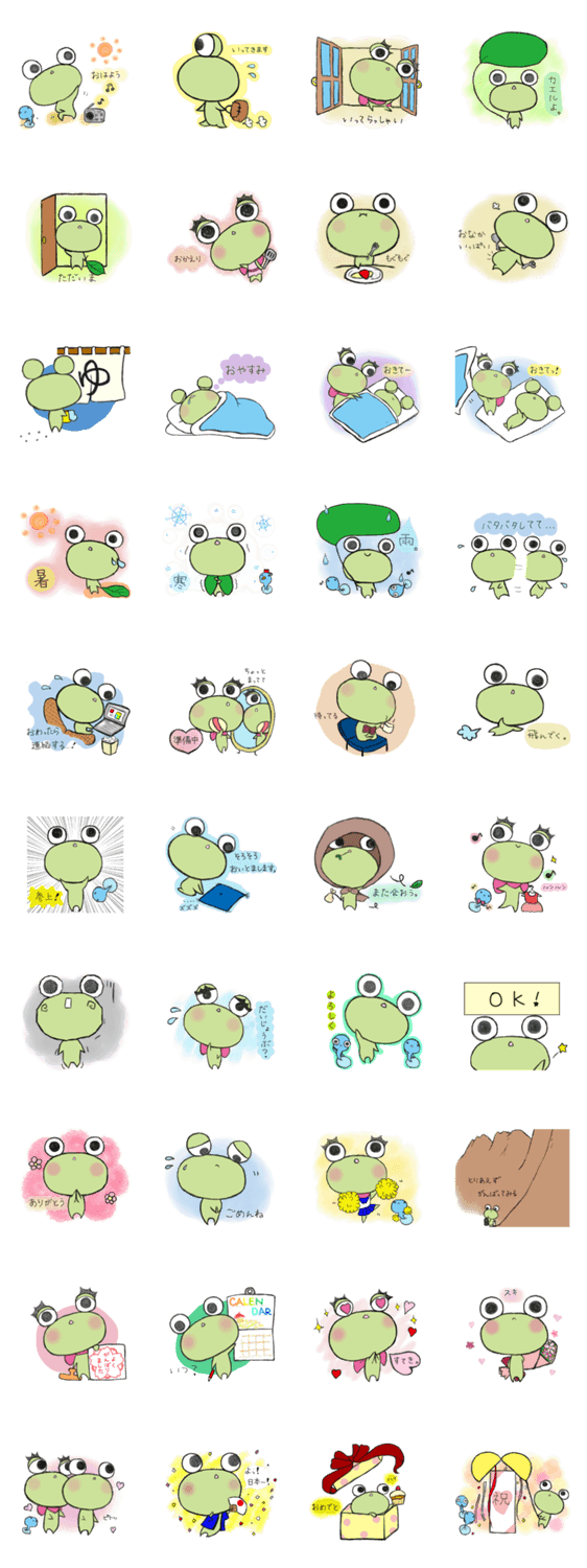 カエル家族といっしょ unatarou コメントをどうぞ なかよしのカエル家族が日常会話をお手伝いするよ。日々のコミュニケーションに使えるスタンプがいっぱい!カラフルなスタンプでトークを楽しんでね♪ このスタンプどう思う?!↓クリックで投票♪好き (0)かわいい (0)かっこいい (0)おもしろい (0)使いやすそう (0)欲しい (0)萌え (0)ほっこりする (0)おしゃれ (0)ゆるい (0)こわい (0)ウザい (0)キモい (0)ムカつく (0)持ってる (0)癒される (0)セクシー (0)個性的 (0)私は買わない (0)誰かプレゼントして! (0) 購入・プレゼントする Facebookでシェア Twitterでシェア