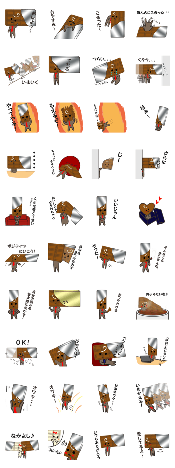 カカオ77%チョコレート君 (略して課長君) ブラックカンパニー コメントをどうぞ カカオ77%チョコレート君は心優しい課長です。みんなにカチョーさんと呼ばれてます。 このスタンプどう思う?!↓クリックで投票♪好き (0)かわいい (0)かっこいい (0)おもしろい (0)使いやすそう (0)欲しい (0)萌え (0)ほっこりする (0)おしゃれ (0)ゆるい (0)こわい (0)ウザい (0)キモい (0)ムカつく (0)持ってる (0)癒される (0)セクシー (0)個性的 (0)私は買わない (0)誰かプレゼントして! (0) 購入・プレゼントする Facebookでシェア Twitterでシェア