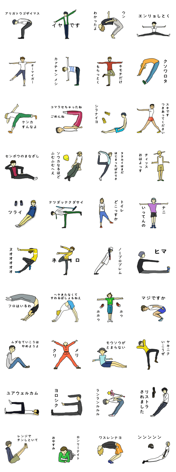 カタカナ先輩 シムシム コメントをどうぞ 言いたいことの最初の文字をからだで表現してしまう先輩方のスタンプです。身体能力にすぐれている方が多いです。 このスタンプどう思う?!↓クリックで投票♪好き (0)かわいい (0)かっこいい (0)おもしろい (0)使いやすそう (0)欲しい (0)萌え (0)ほっこりする (0)おしゃれ (0)ゆるい (0)こわい (0)ウザい (0)キモい (0)ムカつく (0)持ってる (0)癒される (0)セクシー (0)個性的 (0)私は買わない (0)誰かプレゼントして! (0) 購入・プレゼントする Facebookでシェア Twitterでシェア