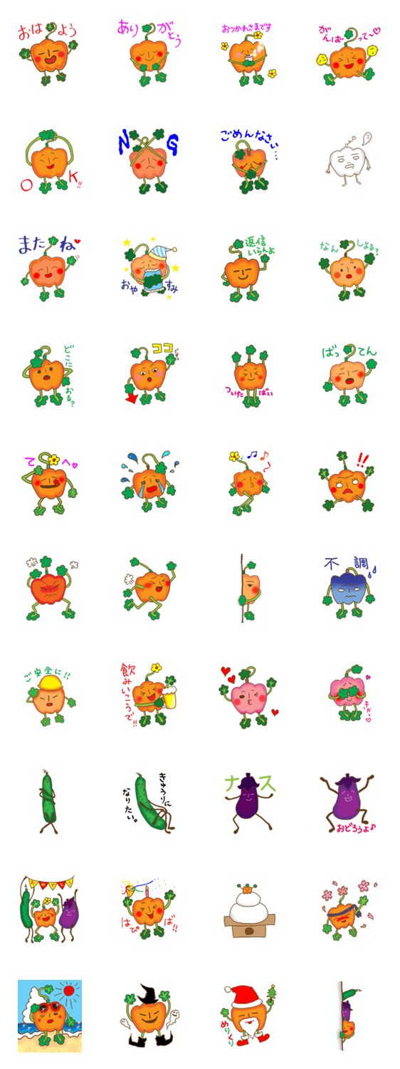 カボチャ、ときどきナス、キュウリ。 みほcafe コメントをどうぞ カボチャの日常スタンプ。産まれたトコ・長崎の方言も、つい出ちゃうよ♪友達のナスとキュウリもたまにやってきます。 このスタンプどう思う?!↓クリックで投票♪好き (0)かわいい (0)かっこいい (0)おもしろい (0)使いやすそう (0)欲しい (0)萌え (0)ほっこりする (0)おしゃれ (0)ゆるい (0)こわい (0)ウザい (0)キモい (0)ムカつく (0)持ってる (0)癒される (0)セクシー (0)個性的 (0)私は買わない (0)誰かプレゼントして! (0) 購入・プレゼントする Facebookでシェア Twitterでシェア