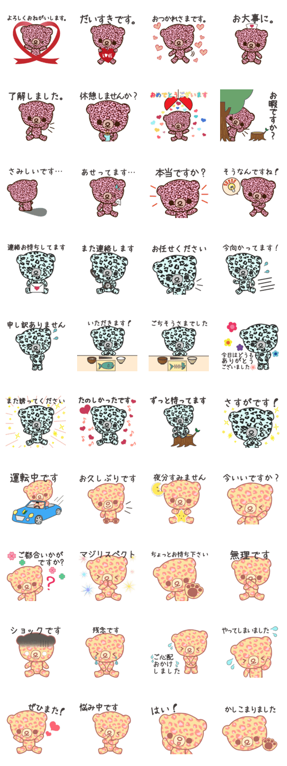 カラフルアニマルベア【敬語バージョン】 けこ コメントをどうぞ カラフルなアニマル柄のくまたん第2弾です。3色のヒョウ柄がとってもキュート。敬語スタンプを使って先輩、上司、お友達にとたくさん使えるかわいいスタンプ。 このスタンプどう思う?!↓クリックで投票♪好き (0)かわいい (0)かっこいい (0)おもしろい (0)使いやすそう (0)欲しい (0)萌え (0)ほっこりする (0)おしゃれ (0)ゆるい (0)こわい (0)ウザい (0)キモい (0)ムカつく (0)持ってる (0)癒される (0)セクシー (0)個性的 (0)私は買わない (0)誰かプレゼントして! (0) 購入・プレゼントする Facebookでシェア Twitterでシェア