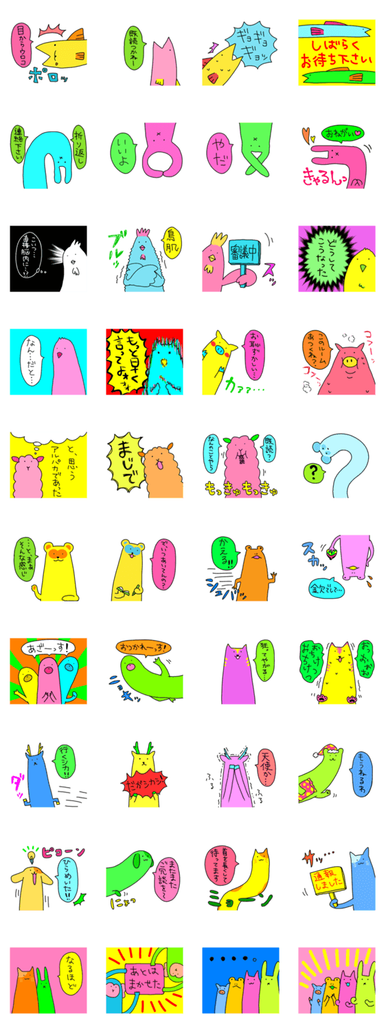 カラフルポップなロングアニマル かぴ コメントをどうぞ 目に優しくない色をした長めの動物たちが右も左も上も下も関係なくニョッキリしてるスタンプです。 このスタンプどう思う?!↓クリックで投票♪好き (0)かわいい (0)かっこいい (0)おもしろい (0)使いやすそう (0)欲しい (0)萌え (0)ほっこりする (0)おしゃれ (0)ゆるい (0)こわい (0)ウザい (0)キモい (0)ムカつく (0)持ってる (0)癒される (0)セクシー (0)個性的 (0)私は買わない (0)誰かプレゼントして! (0) 購入・プレゼントする Facebookでシェア Twitterでシェア