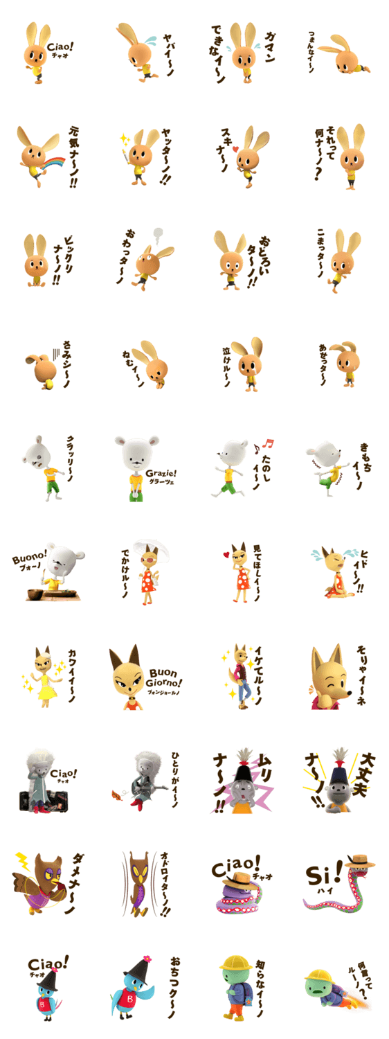 カリーノ・コニ 株式会社ロボット コメントをどうぞ 『カリーノ・コニ』がスタンプになっタ〜ノ!!イタリアのカリーノ森の片隅で一人暮らしをするコニと森に住む動物たちの物語。コニとの毎日はそれはもう大さわぎナ〜ノ!! このスタンプどう思う?!↓クリックで投票♪好き (0)かわいい (0)かっこいい (0)おもしろい (0)使いやすそう (0)欲しい (0)萌え (0)ほっこりする (0)おしゃれ (0)ゆるい (0)こわい (0)ウザい (0)キモい (0)ムカつく (0)持ってる (0)癒される (0)セクシー (0)個性的 (0)私は買わない (0)誰かプレゼントして! (0) 購入・プレゼントする Facebookでシェア Twitterでシェア