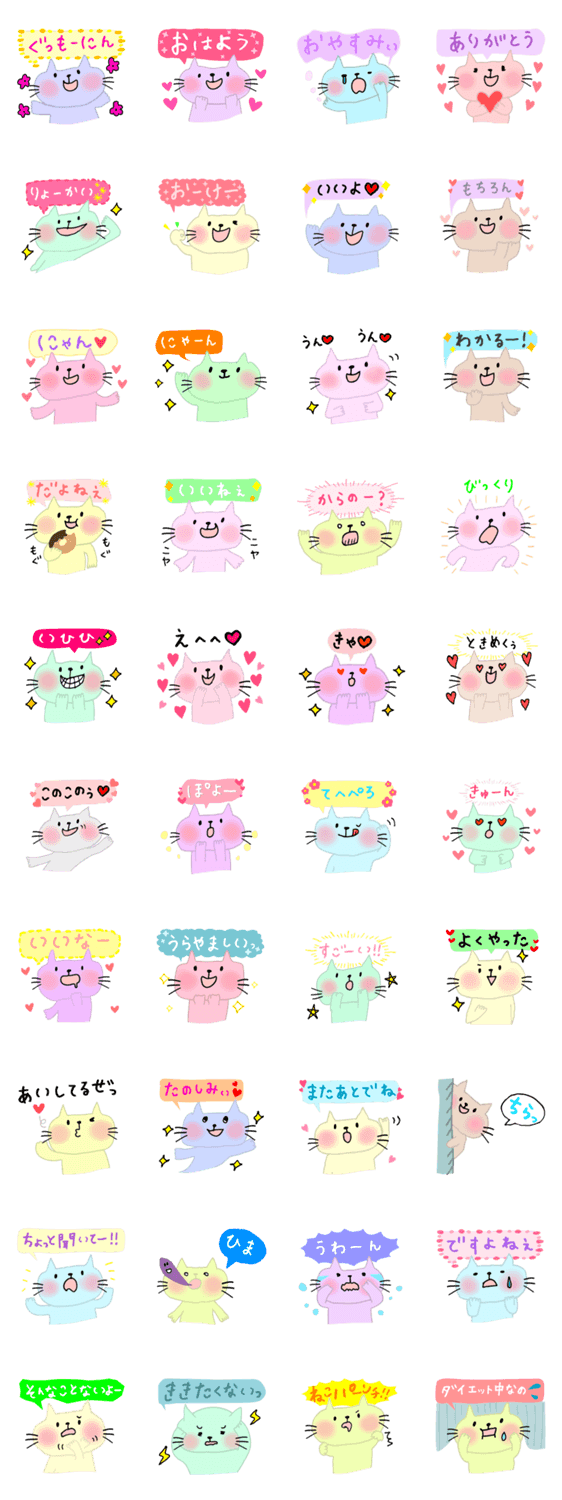 ガールズトークが大好きな猫 わここ コメントをどうぞ ガールズトークが大好きなカラフルな猫の手描き風スタンプだよ。挨拶や相槌などガールズトークで使う定番ワードをスタンプに。大切な友達とのLINEをもっと楽しく♪ このスタンプどう思う?!↓クリックで投票♪好き (0)かわいい (0)かっこいい (0)おもしろい (0)使いやすそう (0)欲しい (0)萌え (0)ほっこりする (0)おしゃれ (0)ゆるい (0)こわい (0)ウザい (0)キモい (0)ムカつく (0)持ってる (0)癒される (0)セクシー (0)個性的 (0)私は買わない (0)誰かプレゼントして! (0) 購入・プレゼントする Facebookでシェア Twitterでシェア