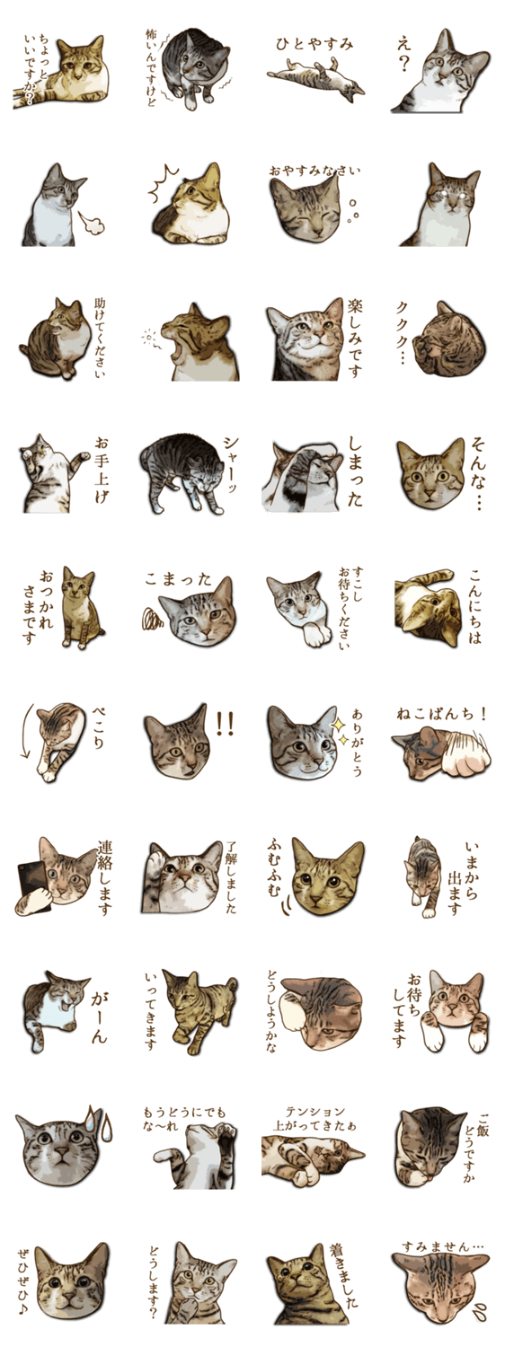 キジトラ!ペンネとコロネ みやーん コメントをどうぞ おとぼけ顔のキジ白猫・ペンネと、端正なキジトラ猫・コロネがリアクション中心にコミュニケーションに花と鼻を添えてくれます。 このスタンプどう思う?!↓クリックで投票♪好き (0)かわいい (0)かっこいい (0)おもしろい (0)使いやすそう (0)欲しい (0)萌え (0)ほっこりする (0)おしゃれ (0)ゆるい (0)こわい (0)ウザい (0)キモい (0)ムカつく (0)持ってる (0)癒される (0)セクシー (0)個性的 (0)私は買わない (0)誰かプレゼントして! (0) 購入・プレゼントする Facebookでシェア Twitterでシェア