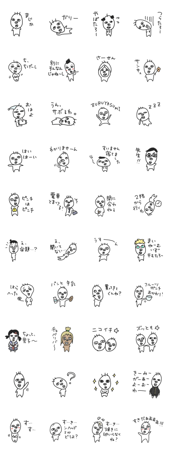 キモたろー、学校へ行く。 あしる コメントをどうぞ みんな大好き、キモたろー。待望の第2弾だよ! 学校に通っている人も、そうでない人も、会話のお供にキモたろー。 このスタンプどう思う?!↓クリックで投票♪好き (0)かわいい (0)かっこいい (0)おもしろい (0)使いやすそう (0)欲しい (0)萌え (0)ほっこりする (0)おしゃれ (0)ゆるい (0)こわい (0)ウザい (0)キモい (0)ムカつく (0)持ってる (0)癒される (0)セクシー (0)個性的 (0)私は買わない (0)誰かプレゼントして! (0) 購入・プレゼントする Facebookでシェア Twitterでシェア