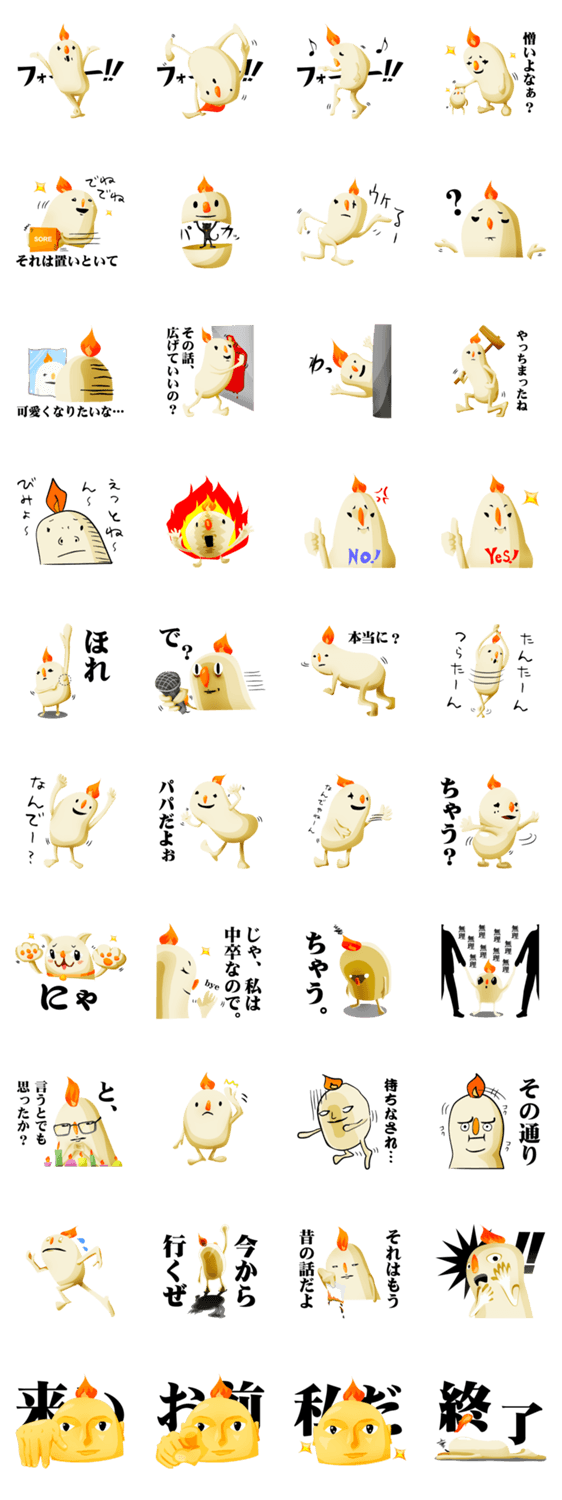 キャンドル・チャン-Candle CHANG CHIKARA.U コメントをどうぞ ゆるさと卑屈さを合わせ持つキャンドルの妖精、キャンドル・チャン。ゆるゆるのLINEがしたい人にぜひ。 このスタンプどう思う?!↓クリックで投票♪好き (0)かわいい (0)かっこいい (0)おもしろい (0)使いやすそう (0)欲しい (0)萌え (0)ほっこりする (0)おしゃれ (0)ゆるい (0)こわい (0)ウザい (0)キモい (0)ムカつく (0)持ってる (0)癒される (0)セクシー (0)個性的 (0)私は買わない (0)誰かプレゼントして! (0) 購入・プレゼントする Facebookでシェア Twitterでシェア