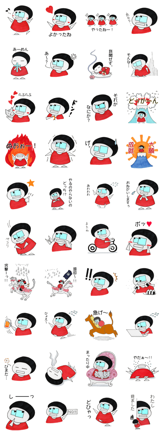ギガコ MARIKO TAMURA コメントをどうぞ 未来の国からやってきた、少女型アンドロイド、ギガコの登場です。生意気だけど憎めない、でも怒ると怖いです。 このスタンプどう思う?!↓クリックで投票♪好き (0)かわいい (0)かっこいい (0)おもしろい (0)使いやすそう (0)欲しい (0)萌え (0)ほっこりする (0)おしゃれ (0)ゆるい (0)こわい (0)ウザい (0)キモい (0)ムカつく (0)持ってる (0)癒される (0)セクシー (0)個性的 (0)私は買わない (0)誰かプレゼントして! (0) 購入・プレゼントする Facebookでシェア Twitterでシェア