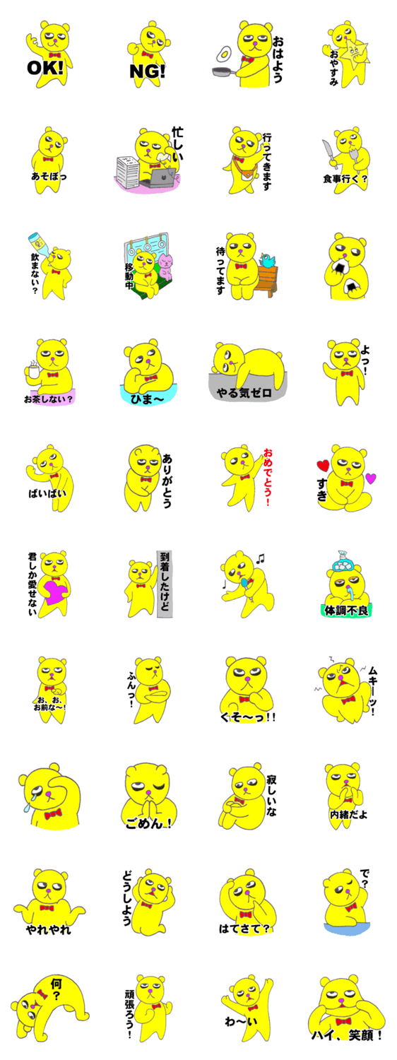 クマっくま nyante コメントをどうぞ 目の下に濃いクマがありますが、彼は至って健康。心配ご無用! このスタンプどう思う?!↓クリックで投票♪好き (0)かわいい (0)かっこいい (0)おもしろい (0)使いやすそう (0)欲しい (0)萌え (0)ほっこりする (0)おしゃれ (0)ゆるい (0)こわい (0)ウザい (0)キモい (0)ムカつく (0)持ってる (0)癒される (0)セクシー (0)個性的 (0)私は買わない (0)誰かプレゼントして! (0) 購入・プレゼントする Facebookでシェア Twitterでシェア