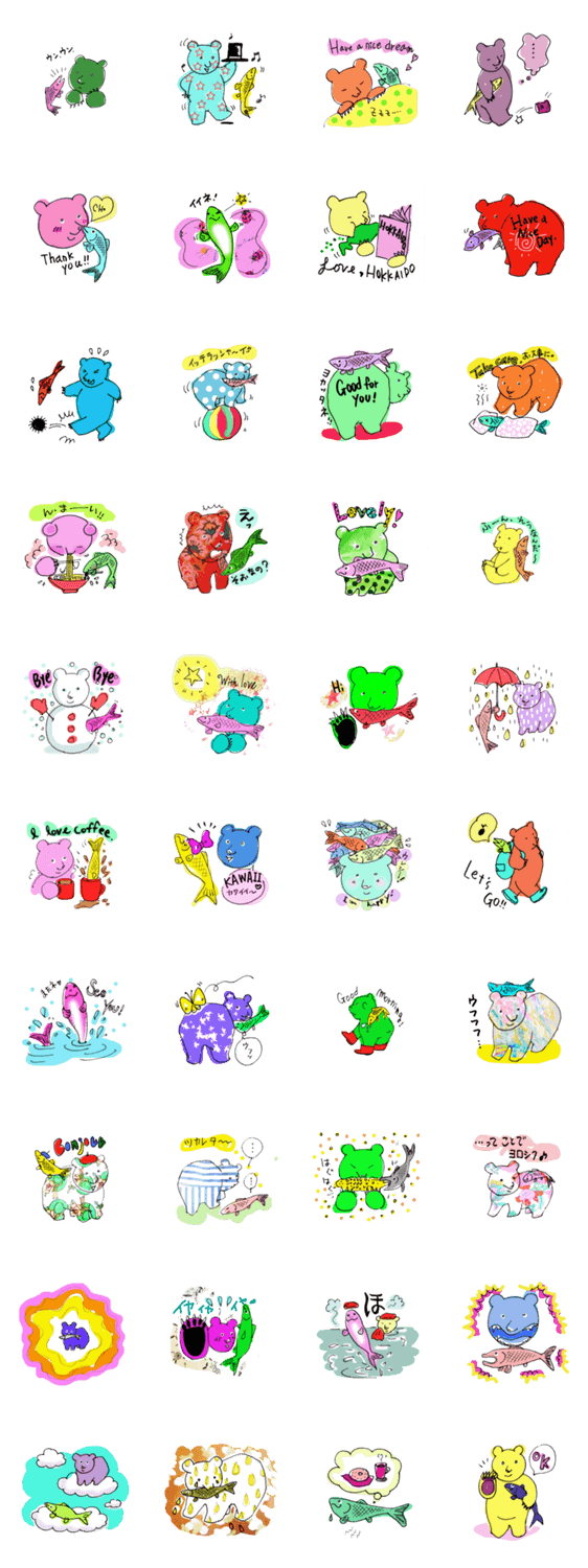クマっこキポリとシャケ子 かわむらえり子 コメントをどうぞ 有名な北海道土産の木彫り、熊と鮭のスタンプです。 このスタンプどう思う?!↓クリックで投票♪好き (0)かわいい (0)かっこいい (0)おもしろい (0)使いやすそう (0)欲しい (0)萌え (0)ほっこりする (0)おしゃれ (0)ゆるい (0)こわい (0)ウザい (0)キモい (0)ムカつく (0)持ってる (0)癒される (0)セクシー (0)個性的 (0)私は買わない (0)誰かプレゼントして! (0) 購入・プレゼントする Facebookでシェア Twitterでシェア