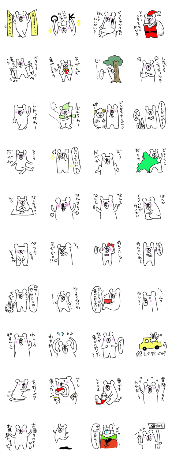クマオin北海道 トモタン コメントをどうぞ 北海道に住む人がよく使う、方言から言い草やら身振り手振りがいっぱいのスタンプです。ゆるキャラクマオがいい味をだしてます。 このスタンプどう思う?!↓クリックで投票♪好き (0)かわいい (0)かっこいい (0)おもしろい (0)使いやすそう (0)欲しい (0)萌え (0)ほっこりする (0)おしゃれ (0)ゆるい (0)こわい (0)ウザい (0)キモい (0)ムカつく (0)持ってる (0)癒される (0)セクシー (0)個性的 (0)私は買わない (0)誰かプレゼントして! (0) 購入・プレゼントする Facebookでシェア Twitterでシェア