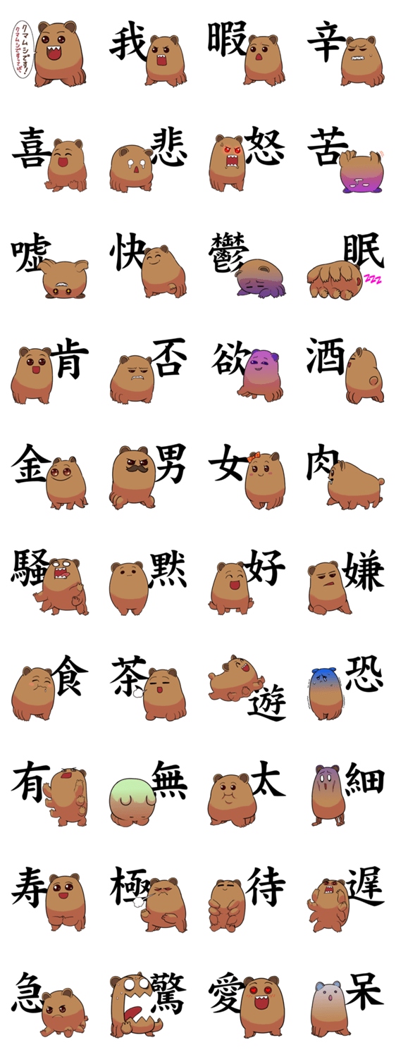 クマムシのひとこと 菊丸文太 コメントをどうぞ 宇宙でも高放射線でも、絶対零度でも大丈夫 頑丈生物クマムシ君 名前からしてきっとこんなデザインに違いない!(断言) 漢字の組み合わせで色々伝えよう このスタンプどう思う?!↓クリックで投票♪好き (0)かわいい (0)かっこいい (0)おもしろい (0)使いやすそう (0)欲しい (0)萌え (0)ほっこりする (0)おしゃれ (0)ゆるい (0)こわい (0)ウザい (0)キモい (0)ムカつく (0)持ってる (0)癒される (0)セクシー (0)個性的 (0)私は買わない (0)誰かプレゼントして! (0) 購入・プレゼントする Facebookでシェア Twitterでシェア