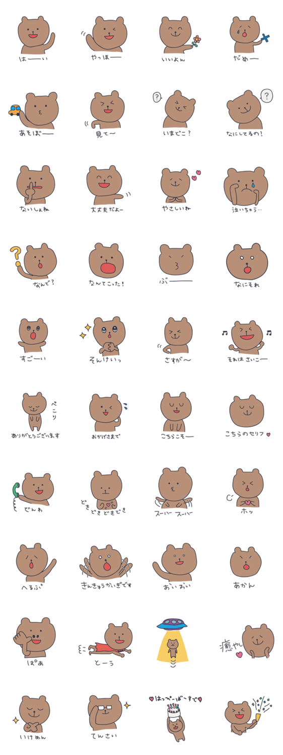 クマ太郎4 〜便利編〜 みくま コメントをどうぞ クマ太郎スタンプ第4弾です。特技は、鼻の穴を広げた変顔です。より使いやすく便利になったのんびり生活スタンプ、よろしくね。 このスタンプどう思う?!↓クリックで投票♪好き (0)かわいい (0)かっこいい (0)おもしろい (0)使いやすそう (0)欲しい (0)萌え (0)ほっこりする (0)おしゃれ (0)ゆるい (0)こわい (0)ウザい (0)キモい (0)ムカつく (0)持ってる (0)癒される (0)セクシー (0)個性的 (0)私は買わない (0)誰かプレゼントして! (0) 購入・プレゼントする Facebookでシェア Twitterでシェア