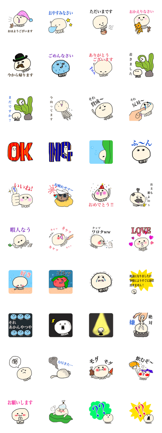 クラゲタソ a-shiba コメントをどうぞ 色々使えるクラゲのキャラクター「クラゲタソ」のスタンプです。 このスタンプどう思う?!↓クリックで投票♪好き (0)かわいい (0)かっこいい (0)おもしろい (0)使いやすそう (0)欲しい (0)萌え (0)ほっこりする (0)おしゃれ (0)ゆるい (0)こわい (0)ウザい (0)キモい (0)ムカつく (0)持ってる (0)癒される (0)セクシー (0)個性的 (0)私は買わない (0)誰かプレゼントして! (0) 購入・プレゼントする Facebookでシェア Twitterでシェア