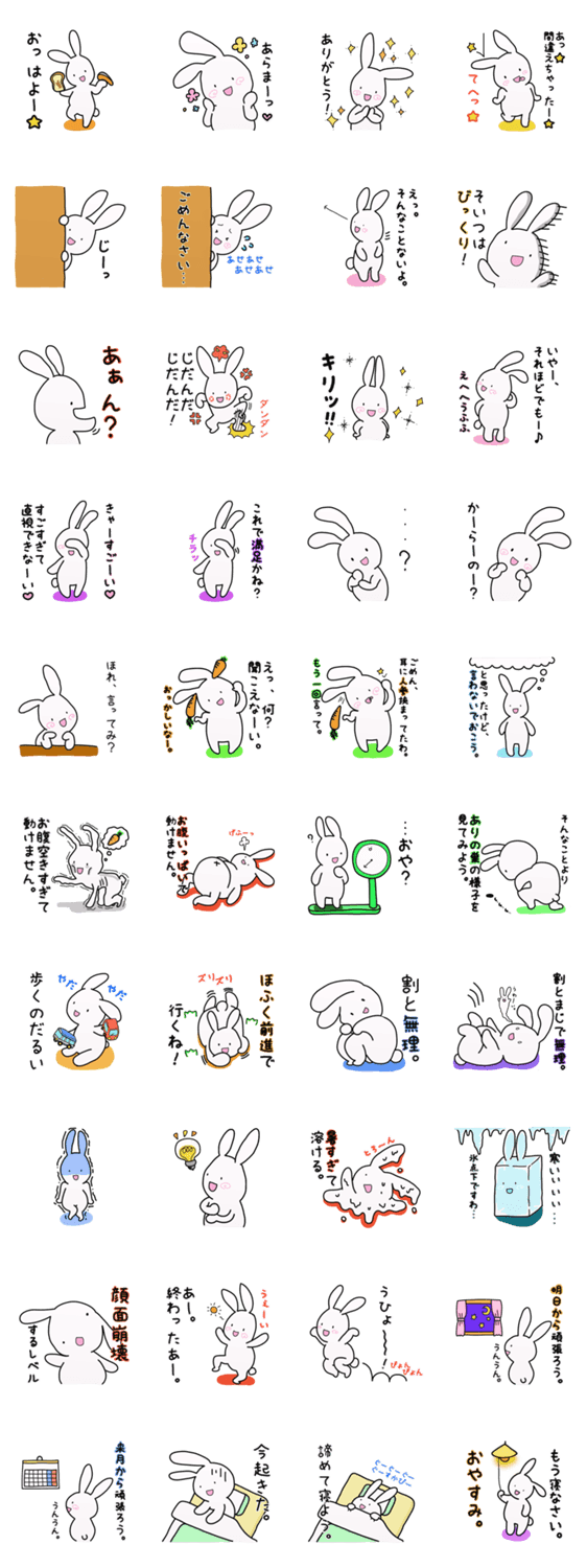 クレイジー白うさぎ クレイジーフレンドまんそん コメントをどうぞ どんな時にも笑顔を崩さない、ちょっとクレイジーでイラッとくる白うさぎ。うれしい時や調子に乗っている時にはほっぺになるとがくっつきます。 このスタンプどう思う?!↓クリックで投票♪好き (0)かわいい (0)かっこいい (0)おもしろい (0)使いやすそう (0)欲しい (0)萌え (0)ほっこりする (0)おしゃれ (0)ゆるい (0)こわい (0)ウザい (0)キモい (0)ムカつく (0)持ってる (0)癒される (0)セクシー (0)個性的 (0)私は買わない (0)誰かプレゼントして! (0) 購入・プレゼントする Facebookでシェア Twitterでシェア