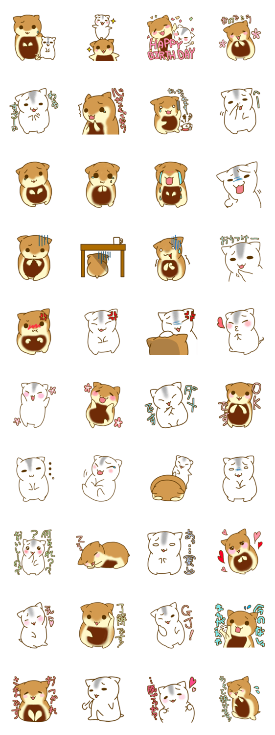 クロハラさんとハラグロさん シノ コメントをどうぞ 優しいクロハラハムスターさんと腹黒いジャンガリアンハムスターさんの仲良し(?)コンビ。ハムスターブーム再来を目指して、ひそかに活動中!? このスタンプどう思う?!↓クリックで投票♪好き (0)かわいい (0)かっこいい (0)おもしろい (0)使いやすそう (0)欲しい (0)萌え (0)ほっこりする (0)おしゃれ (0)ゆるい (0)こわい (0)ウザい (0)キモい (0)ムカつく (0)持ってる (0)癒される (0)セクシー (0)個性的 (0)私は買わない (0)誰かプレゼントして! (0) 購入・プレゼントする Facebookでシェア Twitterでシェア