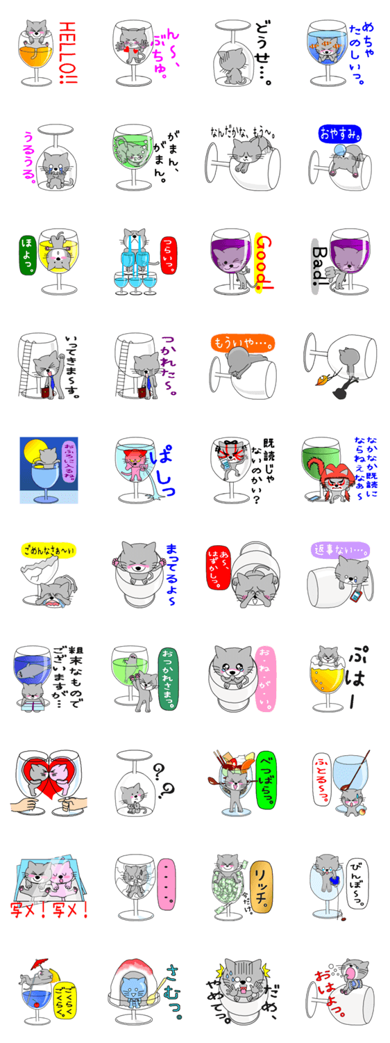 グラにゃん(グラスにゃんこ) Mashiro Factory コメントをどうぞ 今回はスロッピの幼少時代のお話。スロッピは大好きなワイングラスのそばを片時も離れませんでした。 このスタンプどう思う?!↓クリックで投票♪好き (0)かわいい (0)かっこいい (0)おもしろい (0)使いやすそう (0)欲しい (0)萌え (0)ほっこりする (0)おしゃれ (0)ゆるい (0)こわい (0)ウザい (0)キモい (0)ムカつく (0)持ってる (0)癒される (0)セクシー (0)個性的 (0)私は買わない (0)誰かプレゼントして! (0) 購入・プレゼントする Facebookでシェア Twitterでシェア