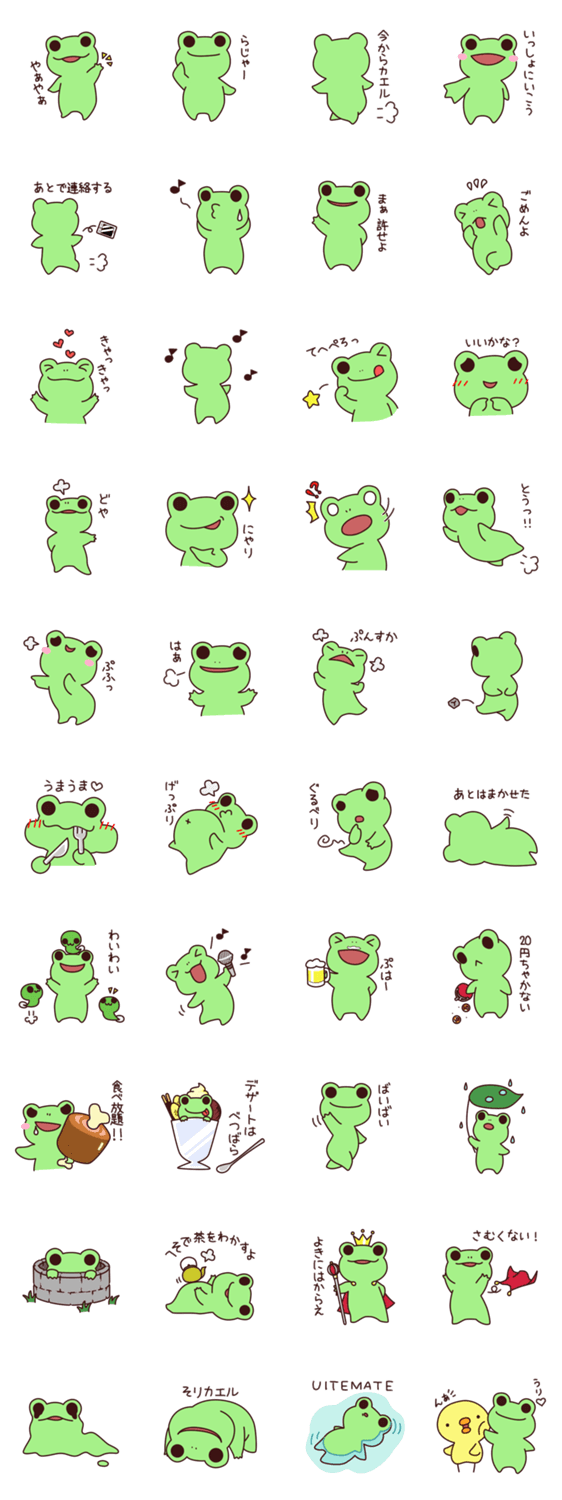 ケロケロケロン ちぃ コメントをどうぞ お調子者ケロン(カエル)の日常を描いたスタンプ。あなたの周りにこんな人いませんか?ゆるかわどうぶつシリーズ第一弾。 このスタンプどう思う?!↓クリックで投票♪好き (0)かわいい (0)かっこいい (0)おもしろい (0)使いやすそう (0)欲しい (0)萌え (0)ほっこりする (0)おしゃれ (0)ゆるい (0)こわい (0)ウザい (0)キモい (0)ムカつく (0)持ってる (0)癒される (0)セクシー (0)個性的 (0)私は買わない (0)誰かプレゼントして! (0) 購入・プレゼントする Facebookでシェア Twitterでシェア