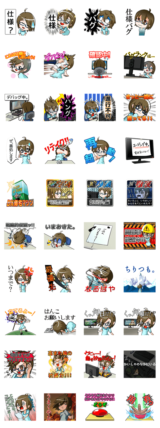 ゲーム屋さんの修羅場スタンプ 限開会社パナキゲート コメントをどうぞ ゲーム会社の新人がたくましくやさぐれて行く様を描いたスタンプ。なかなか切り出しにくい数多の思いを、少しの覚悟と一緒に押してください。 このスタンプどう思う?!↓クリックで投票♪好き (0)かわいい (0)かっこいい (0)おもしろい (0)使いやすそう (0)欲しい (0)萌え (0)ほっこりする (0)おしゃれ (0)ゆるい (0)こわい (0)ウザい (0)キモい (0)ムカつく (0)持ってる (1)癒される (0)セクシー (0)個性的 (0)私は買わない (0)誰かプレゼントして! (0) 購入・プレゼントする Facebookでシェア Twitterでシェア