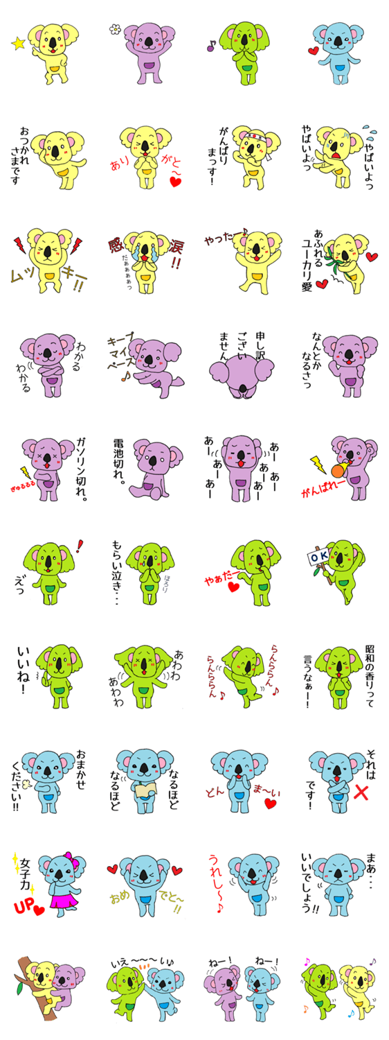 コアラ4姉妹 こた コメントをどうぞ 仲良しコアラの4姉妹。女の子が集まれば、それは楽しく、にぎやかになります。それぞれのキャラクターも楽しいスタンプです。 このスタンプどう思う?!↓クリックで投票♪好き (0)かわいい (0)かっこいい (0)おもしろい (0)使いやすそう (0)欲しい (0)萌え (0)ほっこりする (0)おしゃれ (0)ゆるい (0)こわい (0)ウザい (0)キモい (0)ムカつく (0)持ってる (0)癒される (0)セクシー (0)個性的 (0)私は買わない (0)誰かプレゼントして! (0) 購入・プレゼントする Facebookでシェア Twitterでシェア