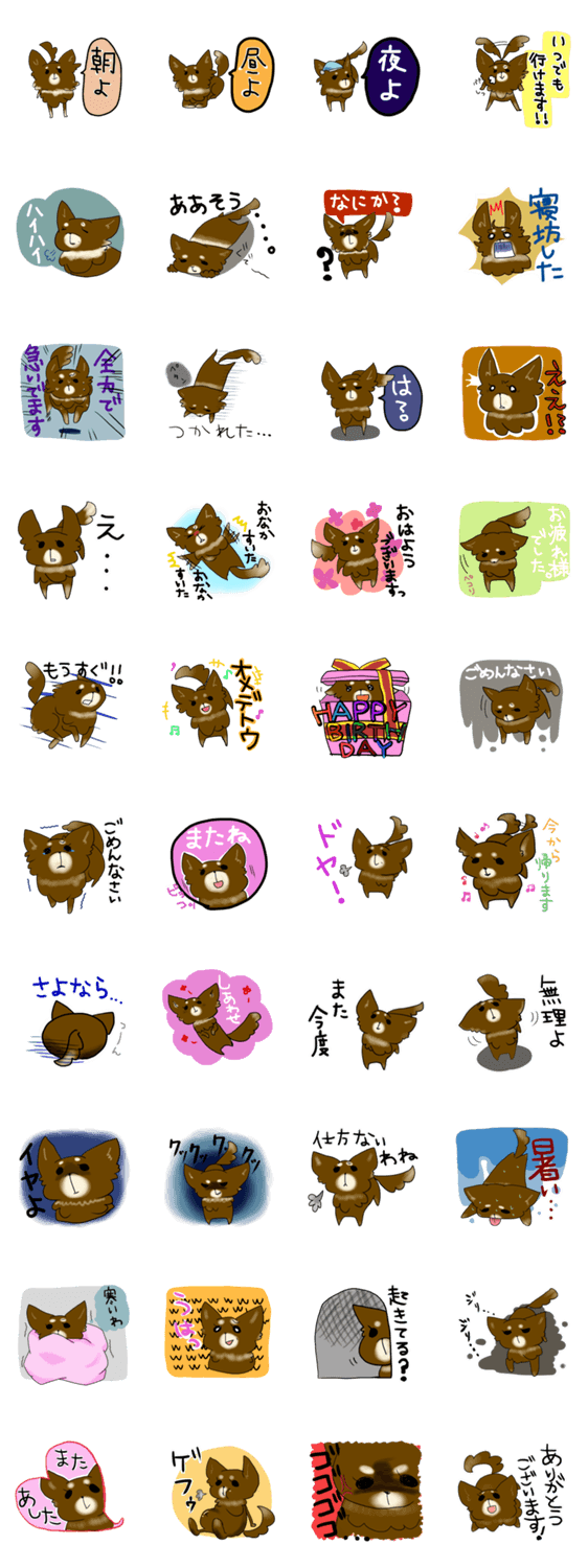 ココアパラダイス ぽちーふ コメントをどうぞ ロングコートチワワのココアのスタンプです このスタンプどう思う?!↓クリックで投票♪好き (0)かわいい (0)かっこいい (0)おもしろい (0)使いやすそう (0)欲しい (0)萌え (0)ほっこりする (0)おしゃれ (0)ゆるい (0)こわい (0)ウザい (0)キモい (0)ムカつく (0)持ってる (0)癒される (0)セクシー (0)個性的 (0)私は買わない (0)誰かプレゼントして! (0) 購入・プレゼントする Facebookでシェア Twitterでシェア