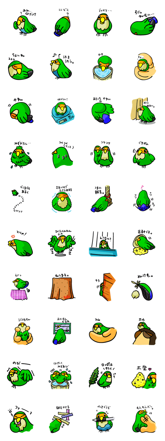 コザクラボタンインコのルリ hounin コメントをどうぞ うちの飼い鳥で名前はルリ、オス。2015年で19歳になります。日常行動をスタンプにしました。トリの言動でコミュニケーションがとれてしまうインコオーナー用です。 このスタンプどう思う?!↓クリックで投票♪好き (0)かわいい (0)かっこいい (0)おもしろい (0)使いやすそう (0)欲しい (0)萌え (0)ほっこりする (0)おしゃれ (0)ゆるい (0)こわい (0)ウザい (0)キモい (0)ムカつく (0)持ってる (0)癒される (0)セクシー (0)個性的 (0)私は買わない (0)誰かプレゼントして! (0) 購入・プレゼントする Facebookでシェア Twitterでシェア