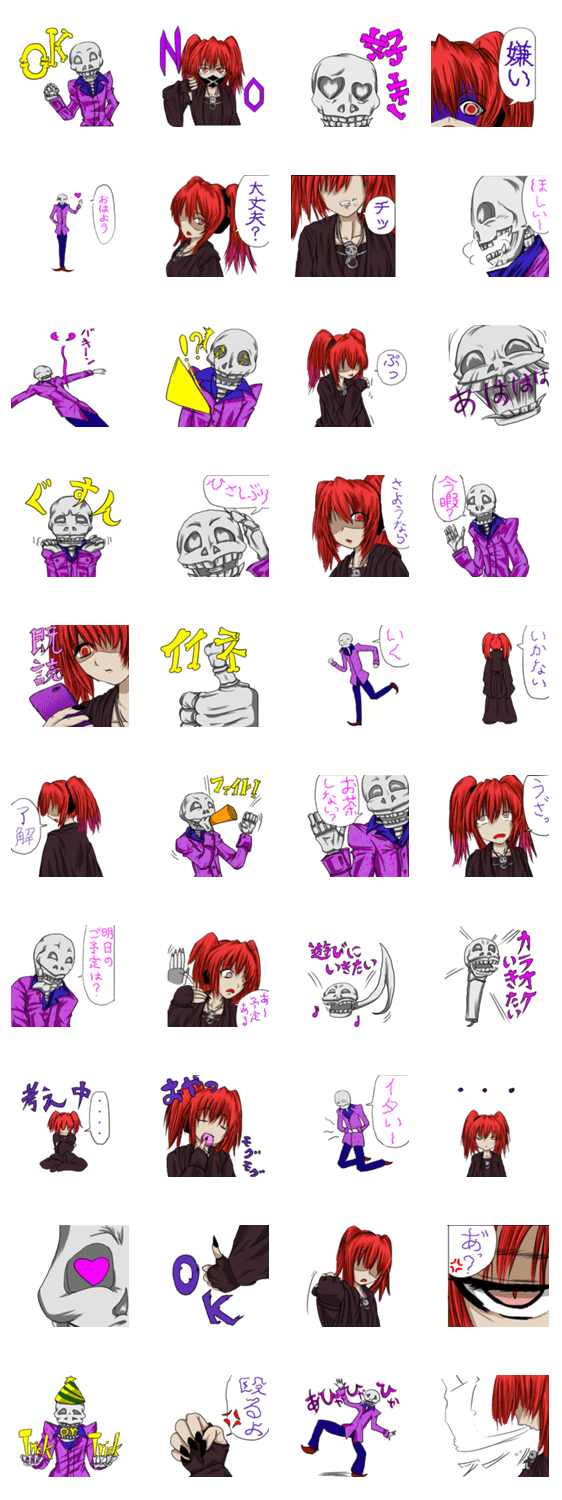 ゴシック女と骸骨ホスト kikki_tk コメントをどうぞ キレた赤髪女とチャラい骸骨ホストのやりとり このスタンプどう思う?!↓クリックで投票♪好き (0)かわいい (0)かっこいい (0)おもしろい (0)使いやすそう (0)欲しい (0)萌え (0)ほっこりする (0)おしゃれ (0)ゆるい (0)こわい (0)ウザい (0)キモい (0)ムカつく (0)持ってる (0)癒される (0)セクシー (0)個性的 (0)私は買わない (0)誰かプレゼントして! (0) 購入・プレゼントする Facebookでシェア Twitterでシェア
