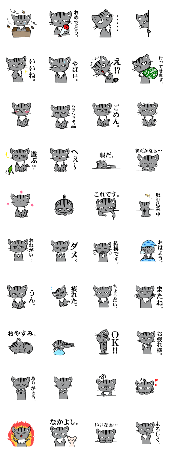サバトラ猫のサスケくん SASUKE コメントをどうぞ いつもクールなサスケくん。我慢強く感情をあまり表に出さない彼ですが、時々我慢できないことも…?礼儀正しく飼育に手間は掛かりませんので、ぜひ可愛がってください。 このスタンプどう思う?!↓クリックで投票♪好き (0)かわいい (0)かっこいい (0)おもしろい (0)使いやすそう (0)欲しい (0)萌え (0)ほっこりする (0)おしゃれ (0)ゆるい (0)こわい (0)ウザい (0)キモい (0)ムカつく (0)持ってる (0)癒される (0)セクシー (0)個性的 (0)私は買わない (0)誰かプレゼントして! (0) 購入・プレゼントする Facebookでシェア Twitterでシェア