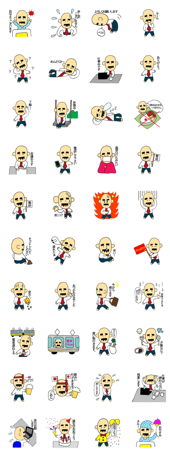 サラリーマンおじさんの一日 Smiley コメントをどうぞ 毎日一生懸命働くサラリーマンのおじさんが、一日中使えるスタンプです。 このスタンプどう思う?!↓クリックで投票♪好き (0)かわいい (0)かっこいい (0)おもしろい (0)使いやすそう (0)欲しい (0)萌え (0)ほっこりする (0)おしゃれ (0)ゆるい (0)こわい (0)ウザい (0)キモい (0)ムカつく (0)持ってる (0)癒される (0)セクシー (0)個性的 (0)私は買わない (0)誰かプレゼントして! (0) 購入・プレゼントする Facebookでシェア Twitterでシェア