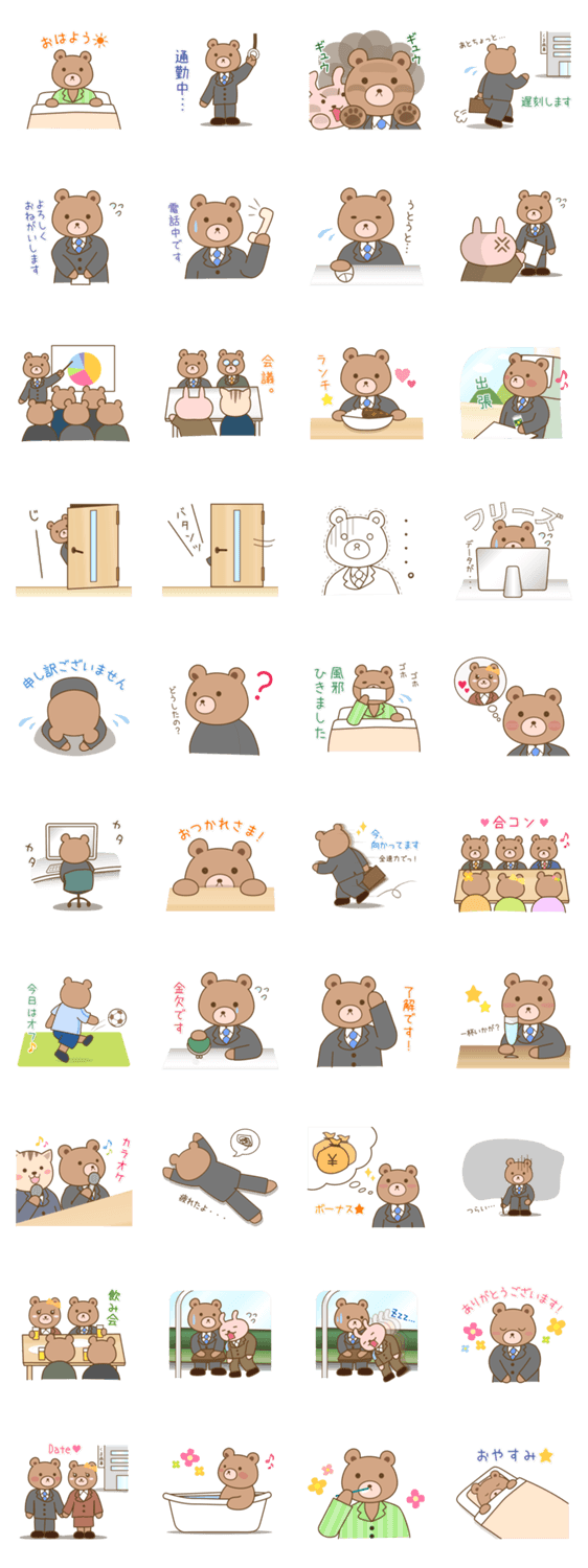 サラリーマンなくま xx.shizu.xx コメントをどうぞ 満員電車に揺られながら通勤したり、時に怒られたりもしながらせっせと仕事をするくまのスタンプです。 このスタンプどう思う?!↓クリックで投票♪好き (0)かわいい (0)かっこいい (0)おもしろい (0)使いやすそう (0)欲しい (0)萌え (0)ほっこりする (0)おしゃれ (0)ゆるい (0)こわい (0)ウザい (0)キモい (0)ムカつく (0)持ってる (0)癒される (0)セクシー (0)個性的 (0)私は買わない (0)誰かプレゼントして! (0) 購入・プレゼントする Facebookでシェア Twitterでシェア
