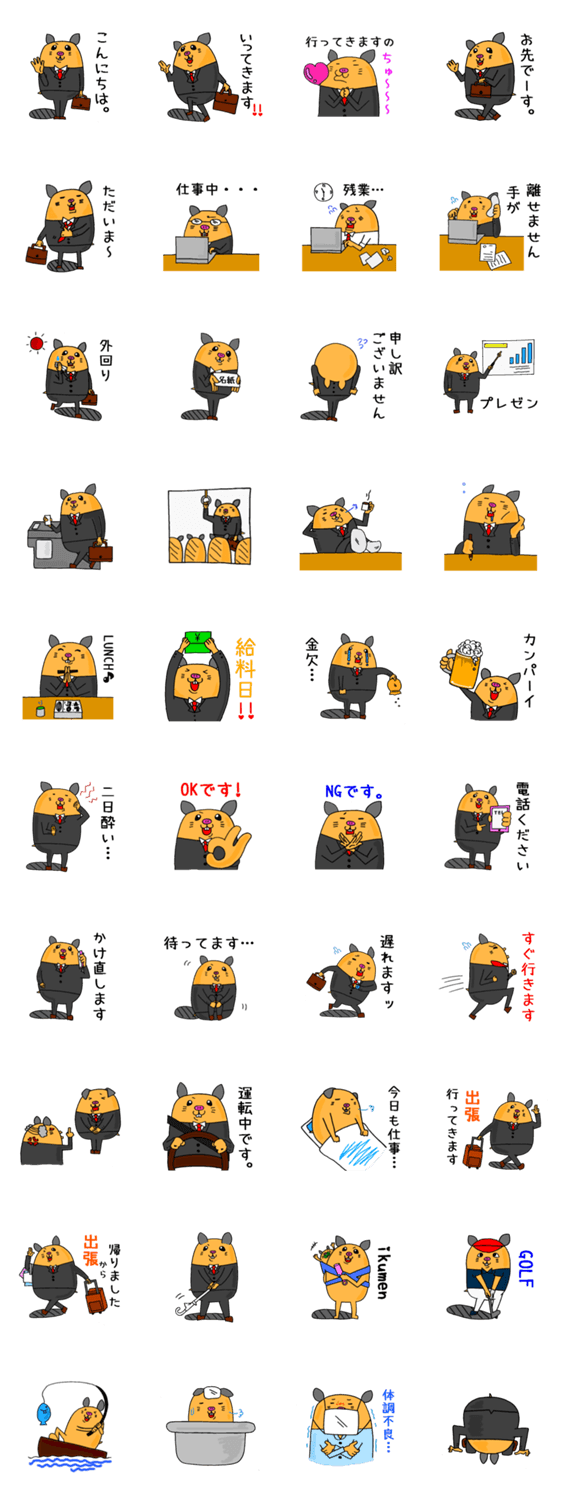 サラリーマンハムスターぽて子 Poyoko コメントをどうぞ ぶさかわキンクマハムスター「ぽて子」がサラリーマンになって登場。女の子だけどサラリーマン?そんなの気にしない! このスタンプどう思う?!↓クリックで投票♪好き (0)かわいい (0)かっこいい (0)おもしろい (0)使いやすそう (0)欲しい (0)萌え (0)ほっこりする (0)おしゃれ (0)ゆるい (0)こわい (0)ウザい (0)キモい (0)ムカつく (0)持ってる (0)癒される (0)セクシー (0)個性的 (0)私は買わない (0)誰かプレゼントして! (0) 購入・プレゼントする Facebookでシェア Twitterでシェア