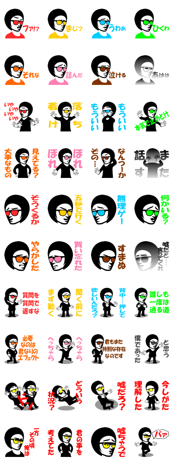 サングラスな人達 vol.6 1multiply7 コメントをどうぞ 日常会話をオーバーアクションで伝えるスタンプです。サングラスをかけているので恥ずかしがらずに使えます。第六弾です このスタンプどう思う?!↓クリックで投票♪好き (0)かわいい (0)かっこいい (0)おもしろい (0)使いやすそう (0)欲しい (0)萌え (0)ほっこりする (0)おしゃれ (0)ゆるい (0)こわい (0)ウザい (0)キモい (0)ムカつく (0)持ってる (0)癒される (0)セクシー (0)個性的 (0)私は買わない (0)誰かプレゼントして! (0) 購入・プレゼントする Facebookでシェア Twitterでシェア