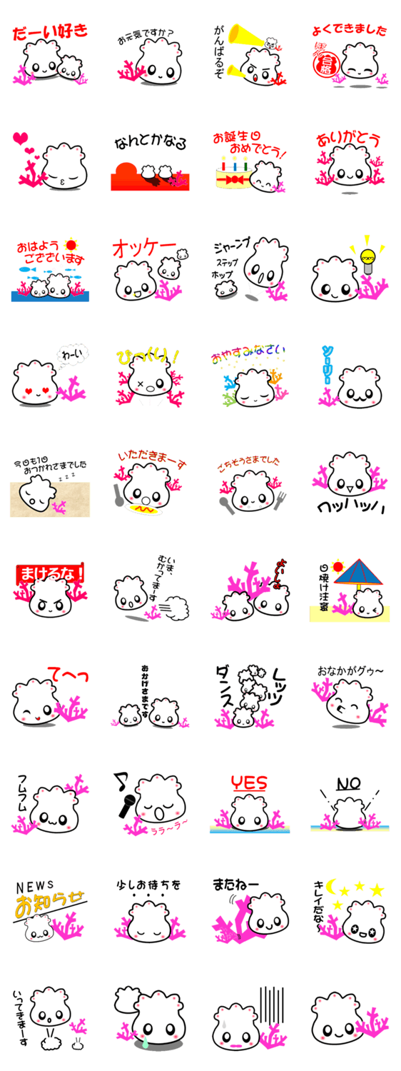サンゴの妖精「う~るぐゎ」 tedasuke コメントをどうぞ サンゴの妖精をイメージしたキャラクターです。沖縄の言葉で「う~る」とは、珊瑚【サンゴ】のことを意味しています。 このスタンプどう思う?!↓クリックで投票♪好き (0)かわいい (0)かっこいい (0)おもしろい (0)使いやすそう (0)欲しい (0)萌え (0)ほっこりする (0)おしゃれ (0)ゆるい (0)こわい (0)ウザい (0)キモい (0)ムカつく (0)持ってる (0)癒される (0)セクシー (0)個性的 (0)私は買わない (0)誰かプレゼントして! (0) 購入・プレゼントする Facebookでシェア Twitterでシェア