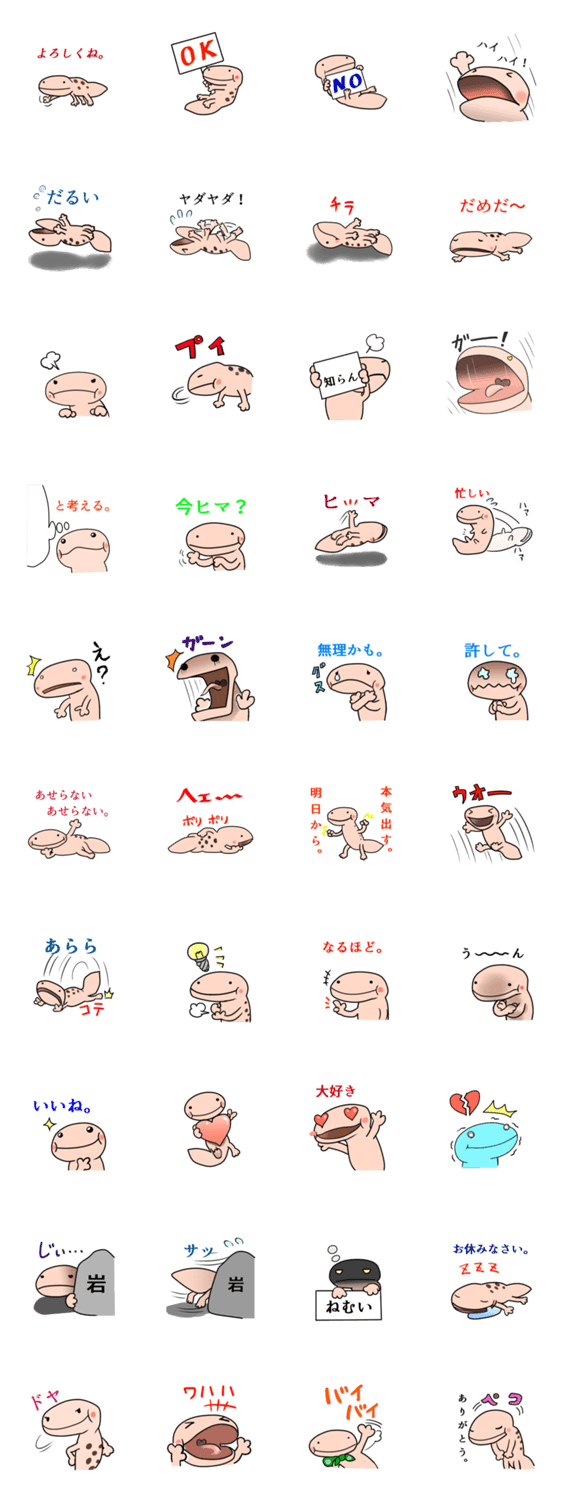 サンショウウオさん サダさんフツカ コメントをどうぞ サンショウウオさんは今日も川の底でのんびり暮らしています。そんな彼の日常をスタンプにしました。 このスタンプどう思う?!↓クリックで投票♪好き (0)かわいい (0)かっこいい (0)おもしろい (0)使いやすそう (0)欲しい (0)萌え (0)ほっこりする (0)おしゃれ (0)ゆるい (0)こわい (0)ウザい (0)キモい (0)ムカつく (0)持ってる (0)癒される (0)セクシー (0)個性的 (0)私は買わない (0)誰かプレゼントして! (0) 購入・プレゼントする Facebookでシェア Twitterでシェア