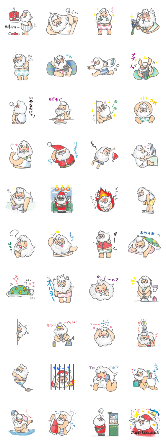 サンタの日常 kopu コメントをどうぞ サンタといえば、クリスマス!と、お思いですか?いやいや!サンタクロースだって、ぐうたらしたりするんです。オールシーズン使える可愛いオジサンなんです! このスタンプどう思う?!↓クリックで投票♪好き (0)かわいい (0)かっこいい (0)おもしろい (0)使いやすそう (0)欲しい (0)萌え (0)ほっこりする (0)おしゃれ (0)ゆるい (0)こわい (0)ウザい (0)キモい (0)ムカつく (0)持ってる (0)癒される (0)セクシー (0)個性的 (0)私は買わない (0)誰かプレゼントして! (0) 購入・プレゼントする Facebookでシェア Twitterでシェア